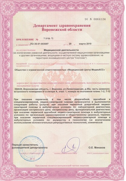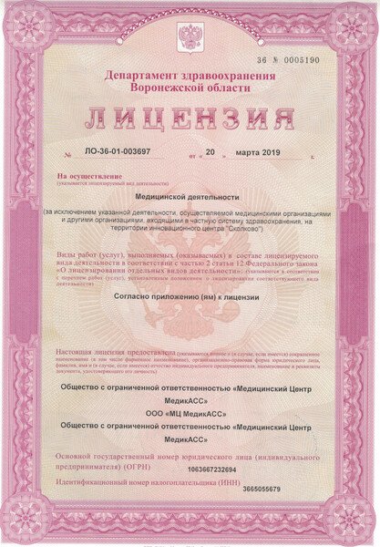 Медицинский центр МедикАСС - это учреждение широкого профиля, предлагающее специально подобранный комплекс процедур и услуг для каждого клиента. Работа клиники организована с учетом максимального комфорта для посетителей. Оборудование кабинетов позволяет провести диагностические исследования организма пациента для составления программы лечения и профилактических мероприятий. В клинике открыты отделения общей терапии, гастроэнтерологии, пульмонологии, лечения инфекционных заболеваний, паразитологии, неврологии, эндокринологии, дерматологии, гинекологии, маммологии, онкологии, психотерапии. Наши специалисты имеют профильное медицинское образование и с пониманием отнесутся к вашим проблемам. Доверяя свое здоровье нам, вы можете быть уверены в результате. Также мы сможем помочь с подбором диеты и программы коррекции веса.